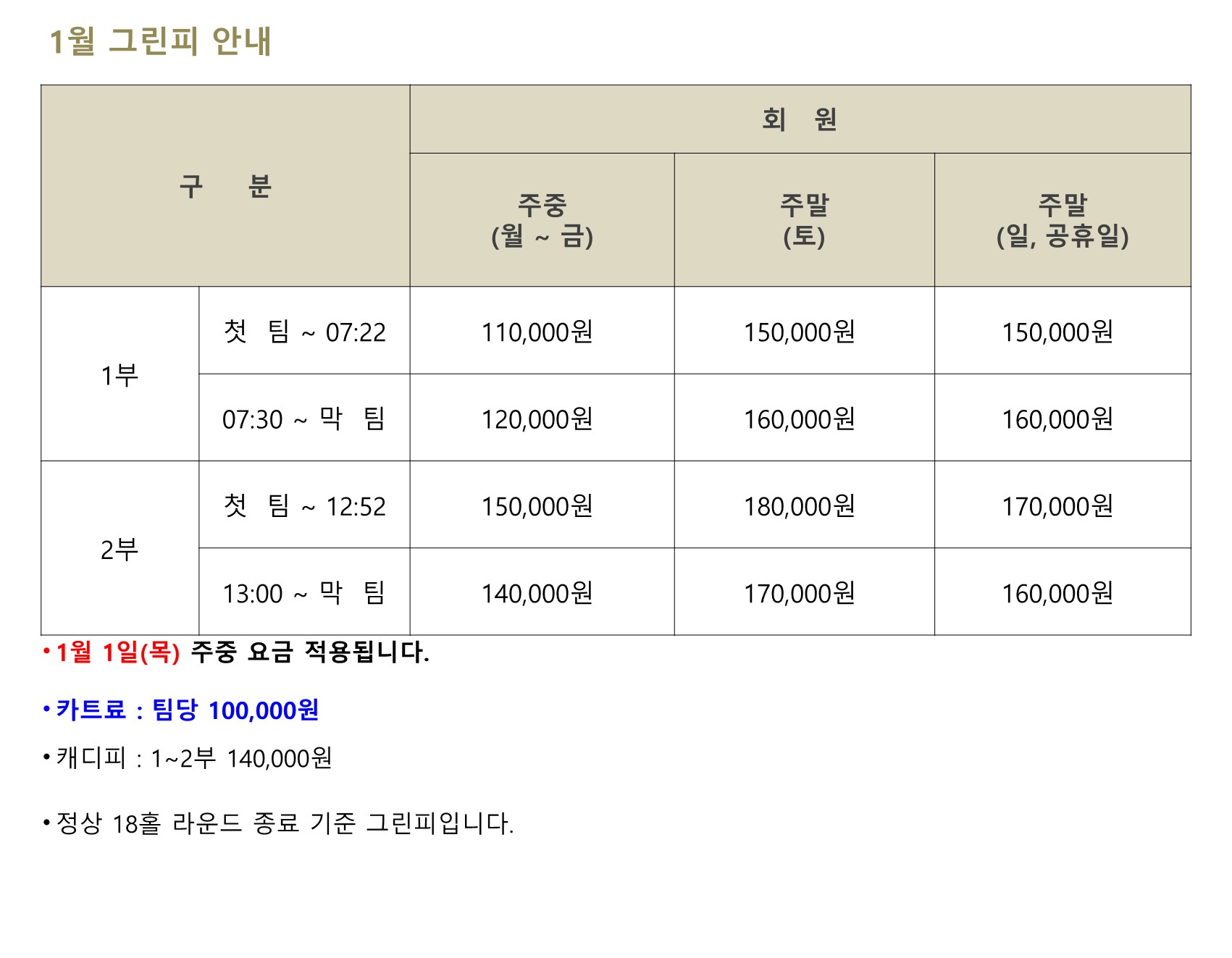 1월 그린피 안내(1/01~1/31)